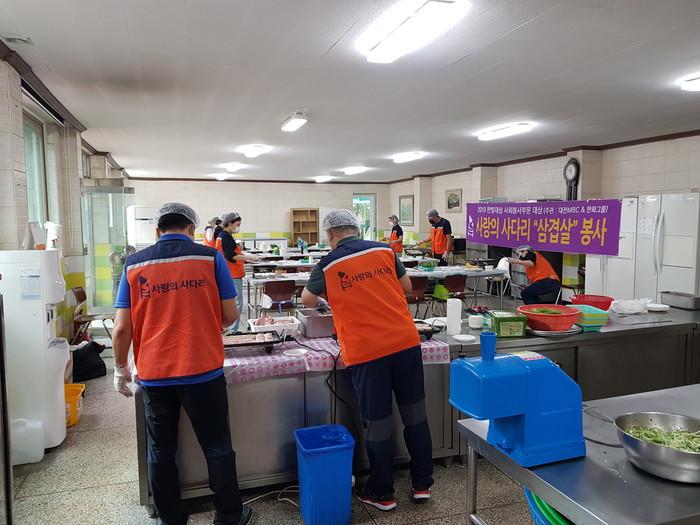 [대전=세계타임즈 이채봉 기자] 9천명 SNS 대전시 봉사단체 사랑의 사다리 밴드(리더 이정제)는 지난3일 오전11시, 서구 정림동에 위치한 정림원(원장 윤황) 아동보육시설에서 삼겹살 봉사로 우리 사회의 따뜻한 사랑을 실천 하였다.