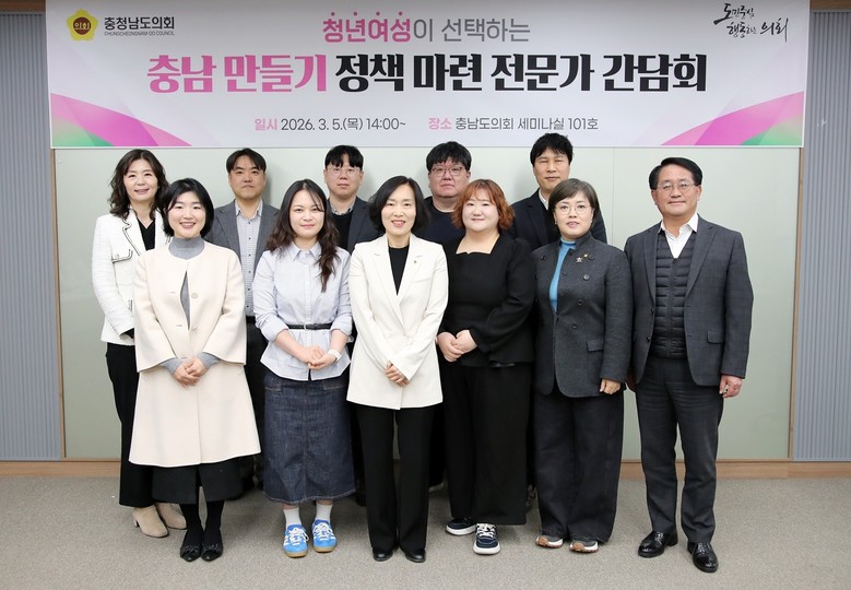 도의회는 5일 의회 세미나실에서 ‘청년여성이 선택하는 충남 만들기 정책 마련’을 주제로 전문가 간담회를 개최했다. 이번 간담회는 ▲성별 고용 ▲임금 격차 ▲산업구조 편중 ▲주거·돌봄 여건 등 청년여성 유출의 구조적 요인을 종합적으로 진단하고, 청년여성이 지역에 장기적으로 정착할 수 있는 정책 대안을 모색하기 위해 마련됐다.