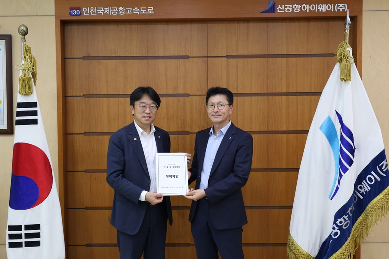 유정복 인천시장(6월 20일), 국회 맹성규 국토교통위원장(7월11일), 인천도시공사 조동암 사장(7월12일)에 이어 오늘 네 번째로 신공항하이웨이 김철오 대표이사에게 정책제안서를 전달했다.