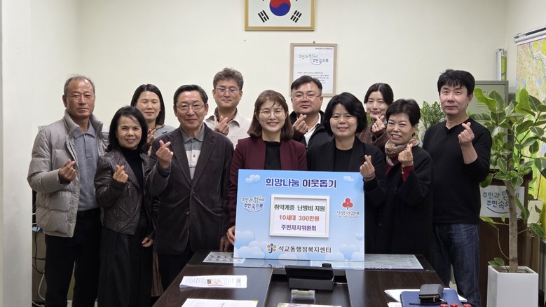 [중구 세계타임즈=이채봉 기자] 대전 중구 석교동(동장 강민서)은 지난 7일 다가오는 겨울철을 앞두고 주민자치위원회(위원장 유미숙)에서 지역 내 취약계층에 난방비를 지원했다고 밝혔다.