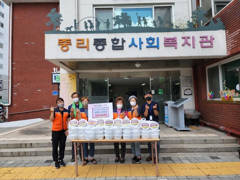 중리종합사회복지관 신성호 관장은 “오늘 맛있는 고추지 무침은 관내 저소득층 100명에게 개별방문으로 잘 전달되었다.”면서 사랑의 사다리 밴드 봉사단체에 감사함을 전했다.
