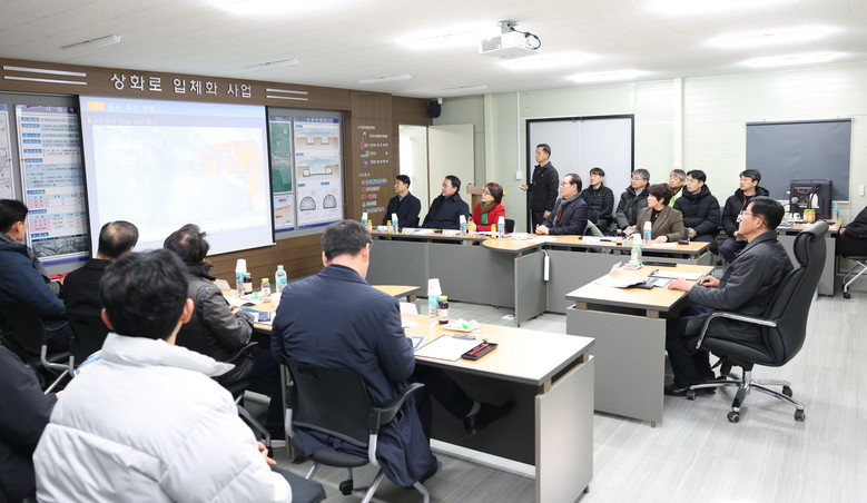 이날 현장을 방문한 건설교통위원들은 상화로 입체화 사업추진 현황을 보고받고, 공사 현장을 구체적으로 점검하며 공사 관계자와 시민 안전이 확보될 수 있도록 현장 관리에 최선을 다해줄 것을 요구했다.