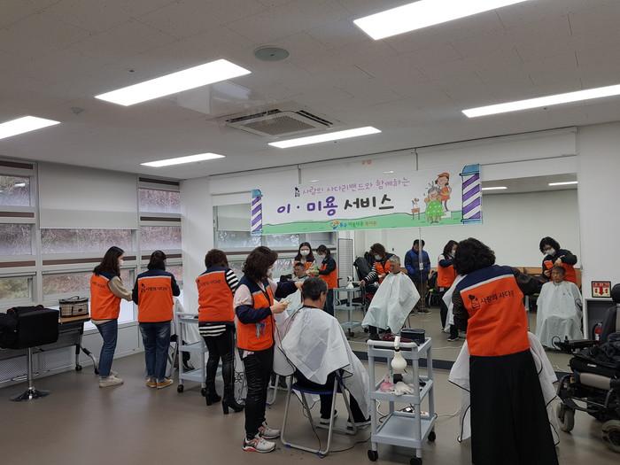동구아름다운복지관 최재천 관장은 “오늘 사랑의 사다리 밴드에서 미용봉사를 지원해주어서 큰힘과 위안이 된다.”면서 감사함을 전했다.