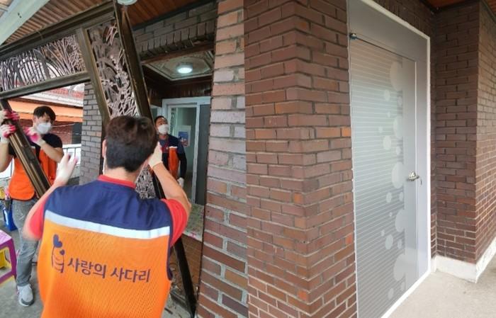 박문수 시설장은 “오늘 서구자원봉사센터와 사랑의 사다리 밴드 봉사단체에서 노후된 현관출입문을 교체해주어서 큰 힘과 위안이 된다.”면서 감사함을 전했다.