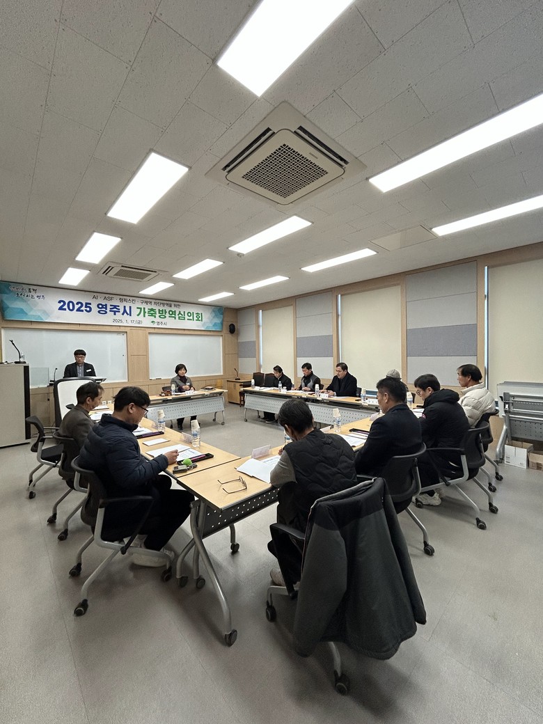 [영주시 세계타임즈=한윤석 기자] 영주시는 17일 농업기술센터 세미나실에서 관계부서와 축산 관련 단체·기관 대표자 등 가축방역심의회 위원 11명이 참석한 가운데 ‘2025년 가축방역 심의회’를 개최했다.