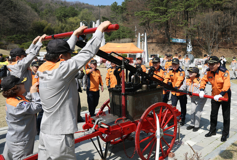이와 함께 과거 산불 진화차의 변천사를 소개하는 사진 전시를 진행했고 옛 소방 장비인 ‘완용펌프’를 활용한 방수 시연과 물 채우기 체험 프로그램도 병행했다.