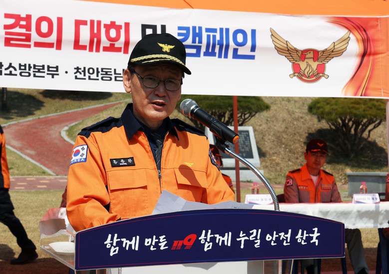 홍종완 행정부지사와 성호선 충남소방본부장, 소방공무원, 의용소방대원 등 200여 명이 참석한 가운데, 이번 행사는 명패 현판식, 산불 예방 결의대회 등의 순으로 진행했다.