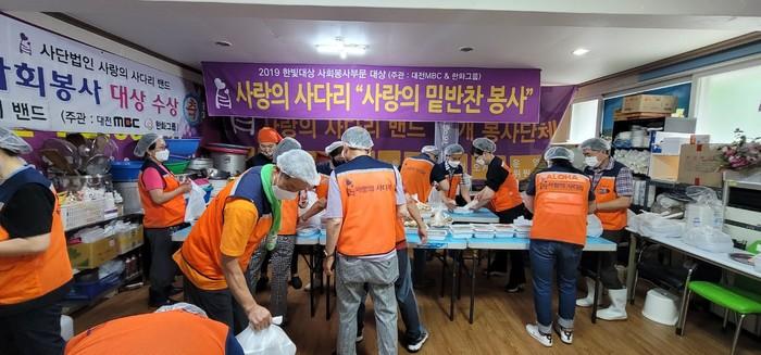 [대전=세계타임즈 이채봉 기자] 코로나19로 힘든 상황에서도 비대면 봉사로 다양한 봉사를 펼치고 있는 SNS 9천명 봉사단체 사단법인 사랑의 사다리 밴드(리더 이정제)는 11일 오후1시, 서구 소외계층 52가정에 밑반찬 봉사로 우리 사회의 따뜻한 사랑을 전달 하였다.