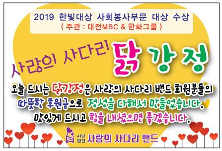 이날 봉사에는 나눔봉사단 유희자 단장, 송혜숙 부단장, 한철웅 국수봉사단장 등 3명이 대덕구 중리동에 위치한 사랑의 사다리 밴드 사무실에서 직접 닭강정 55개를 만들어서 전달을 하였다.