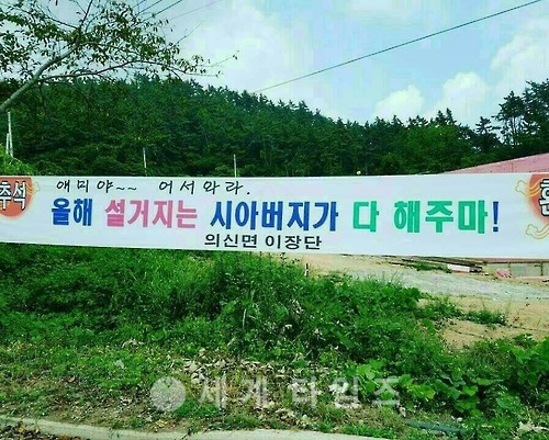 이장단 총무를 맡은 최성원 도명마을 이장은 "여자들이 명절 때면 일도 많은데 수도권에서 여기까지 얼마나 힘들게 오느냐. 편안하게 쉬었다가 갔으면 하는 마음에 현수막을 준비했다"며 "나는 아직 며느리가 없는데 명절 지나면 다들 얼마나 며느리들을 쉬게 해줬는지 후일담을 나누기로 했다"며 전했다.