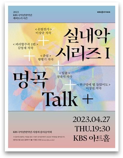 계묘년 KBS국악관현악단의 첫 번째 실내악시리즈 <명곡 Talk+>는 아름다운 한국 창작음악의 명곡을 친절한 해설과 함께 감상할 수 있는 공연이다.