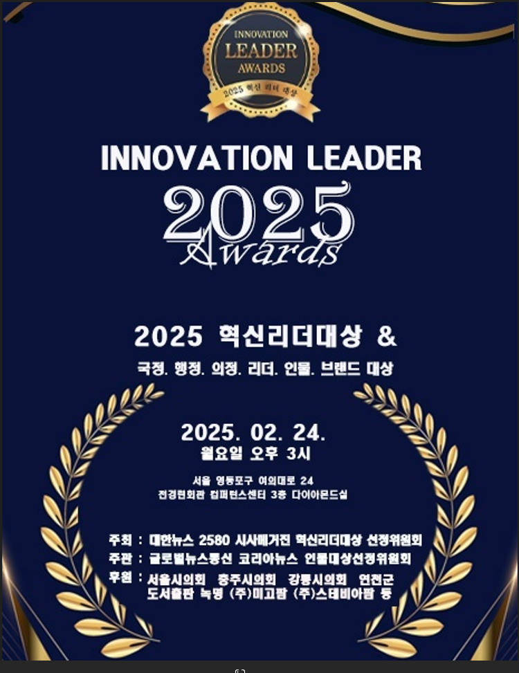 [강원도 세계타임즈=김민석 기자] 양숙희 강원특별자치도의원(안전건설위, 춘천6)은 2월 24일(월) 오후3시 전경련회관 컨퍼런스센터에서 대한뉴스 2580 시사매거진이 주최하는 ‘2025 혁신리더 의정부문 대상’을 수상했다.