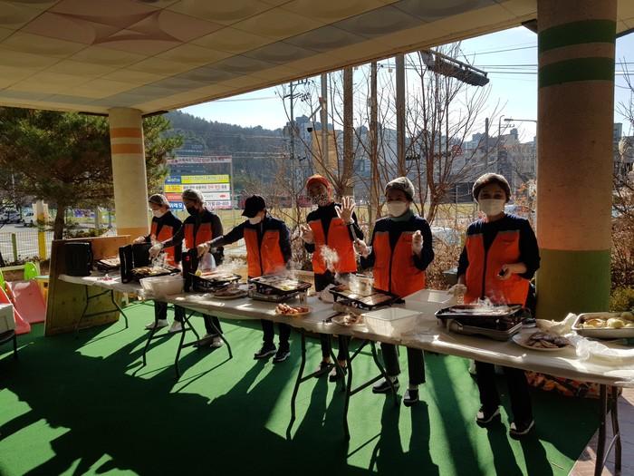 이날 봉사에는 유희자 단장을 비롯해서 회원10명이 야외에서 삼겹살과 목살을 직접 구운후 전달을 하였다.