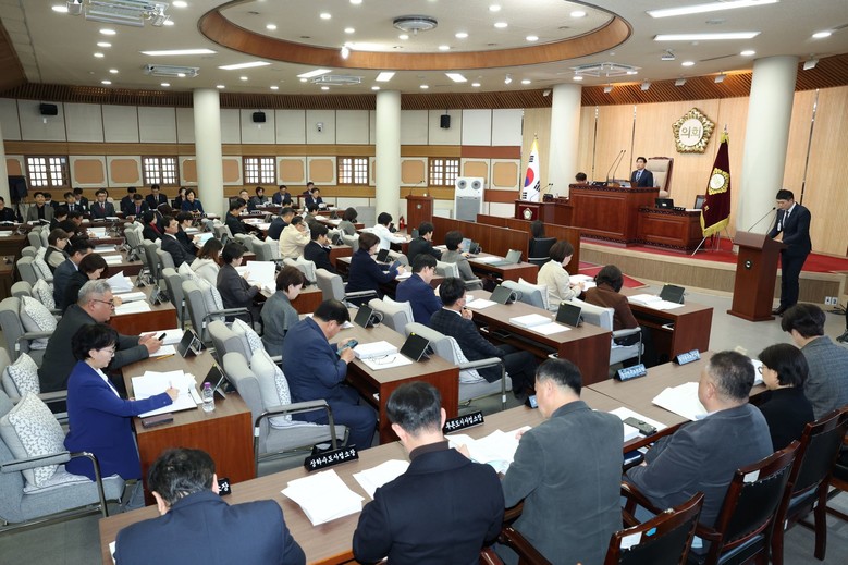 이번 임시회는 개회 당시 예고한 대로 2026년도 제1회 추가경정예산안 심사와 시정에 관한 질문, 각종 안건 심사를 중심으로 운영됐다. 회기 초반인 5일과 6일 열린 본회의에서는 시정 전반에 대한 질문과 답변이 이어졌고, 이후 3월 9일부터 18일까지는 각 상임위원회와 예산결산특별위원회가 안건과 추경안을 집중 심사하며 회기 운영의 밀도를 높였다.