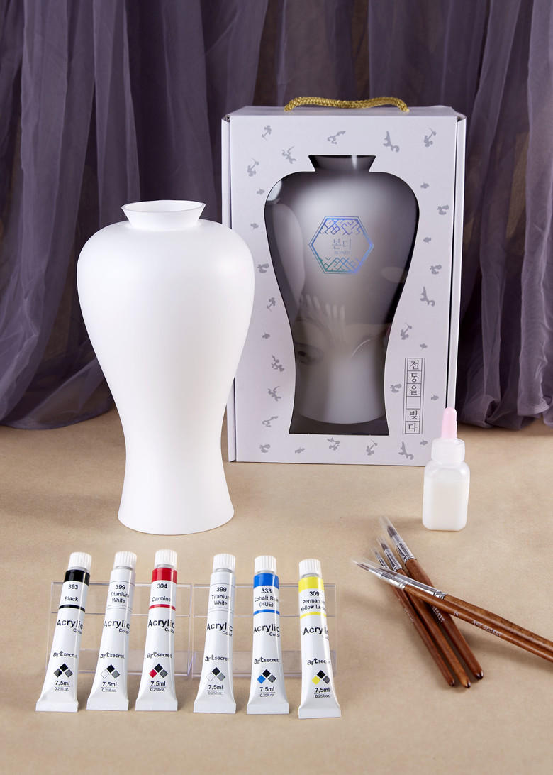 전통문양이 아닌 원하는 그림도 마음대로 그리는 것이 가능하다. 특히 고려청자 키트는 현대적으로 재해석한 도자기 키트로, 세라믹이 아닌 무독성 재질인 HDPE 재질을 사용하여 깨지지 않고 튼튼하다.