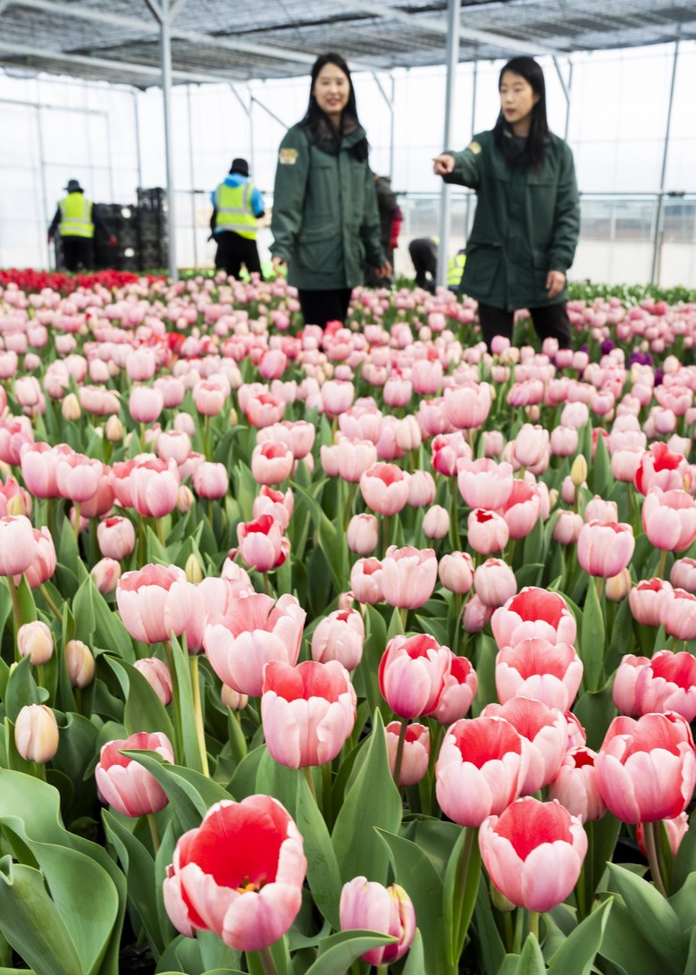 | ▲튤립축제 개막을 열흘 앞둔 지난 10일 오전, 에버랜드 인근 식물 하우스에서 직원들이 축제 현장을 화사하게 수놓을 튤립들의 상태를 살펴보며 봄맞이 준비에 한창이다.에버랜드 튤립축제는 오는 3월 20일 개막해 4월 말까지 펼쳐진다.[사진=에버랜드] |