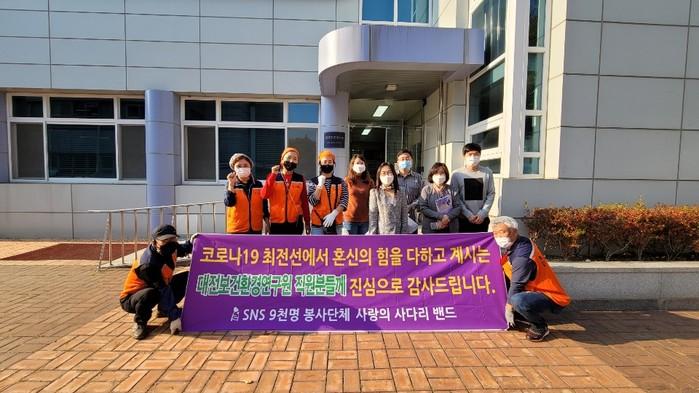 대전시 보건환경연구원 송선아 질병조사과장은 “오늘 사랑의 사다리 밴드 봉사단체에서 맛있는 통닭을 지원해 주어서 큰힘과 위안이 된다,”면서 “대전시 보건환경연구원은 코로나19 종식을 위해서 최선을 다하겠다.”고 말했다