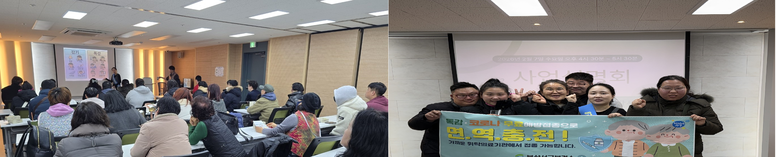 이번 교육은 장애인자립생활센터 이용자 및 종사자 60여 명을 대상으로 진행되었으며 인플루엔자와 일반 감기의 차이점을 설명하고, 인플루엔자가 단순 감기보다 합병증 위험이 높아 예방접종이 반드시 필요함을 강조하였다. 또한 인플루엔자·코로나19 예방접종의 중요성과 기침 예절, 올바른 손 씻기 방법 등 생활 속 감염병 예방 수칙을 안내하였다. 참여자들에게는 예방접종 안내문과 홍보물(핸드크림, 풋크림)이 배부되었으며, 교육 현장에서 높은 관심과 호응을 얻었다.