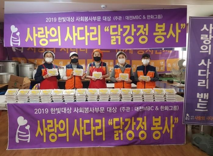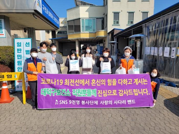 [대전=세계타임즈 이채봉 기자] SNS 9천명 대전시 봉사단체 사랑의 사다리 밴드(리더 이정제)는 8일 오후3시, 대덕구 보건소에 닭강정 100개 전달로 우리 사회의 따뜻한 사랑을 실천 하였다.