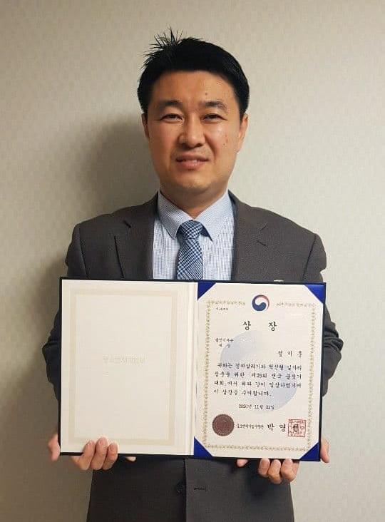 정지훈 아나운서가 지난 22일 민주평화통일 염원을 위한 '제25회 전국글짓기 대회'에서 중소벤처기업부장관상 대상을 수상했다.