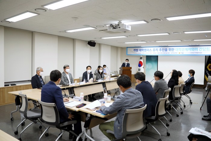 이번 간담회는 상병헌 위원장의 인사를 시작으로 시 집행부의 대학캠퍼스 유치 추진현황을 보고 받고, 질의‧응답의 시간을 가진 뒤 각 대학별 이전에 따른 지원 요구사항 등에 대해 논의하는 순으로 진행됐다.