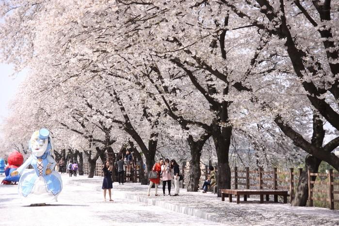 ▲ 안동에는 낙동강변 벚꽃축제가 매년 열린다. 하양과 연분홍의 꽃 대궐이 1Km이상 긴 터널을 이룬다. 올 해는 빨라지는 개화시기에 맞춰 3월 29일부터 4월 7일까지 10일간 이어진다.