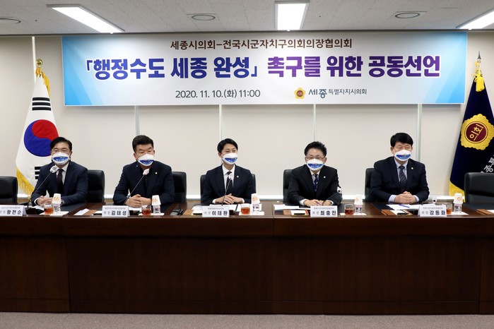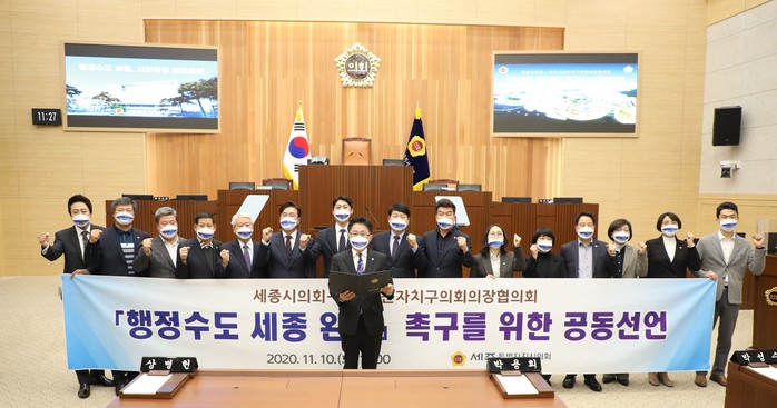 세종시의회는 지난 9월 12일 전국 광역시도 단위 의장협의체인 시‧도의회의장협의회와 ‘행정수도 세종 완성을 위한 공동선언문’을 채택한 데 이어, 전국 기초 단위의 지방의회와도 공동선언문을 채택함으로써 전국 모든 지방의회(광역, 기초)가 행정수도 세종 완성을 염원했다는 데 의미가 있다고 밝혔다.