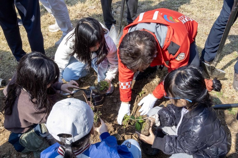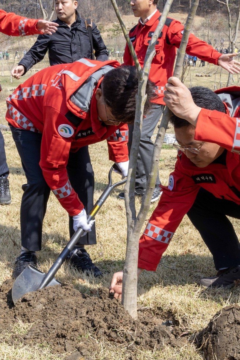 이날 행사에는 대전시 OK예약서비스를 통해 신청한 시민과 대전 소재 공공기관 직원 등 1500여 명이 참여해 산수유와 홍가시나무 등 총 5500주를 식재했다.