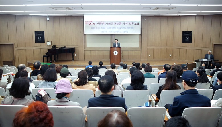 구는 대전과학기술대학교 동방관에서 ‘2026년 신중년 사회공헌활동 지원사업’ 참여자 100여 명을 대상으로 사전 직무 교육을 실시했으며, 이들이 이후 본격적인 사회공헌활동에 나선다고 27일 밝혔다.