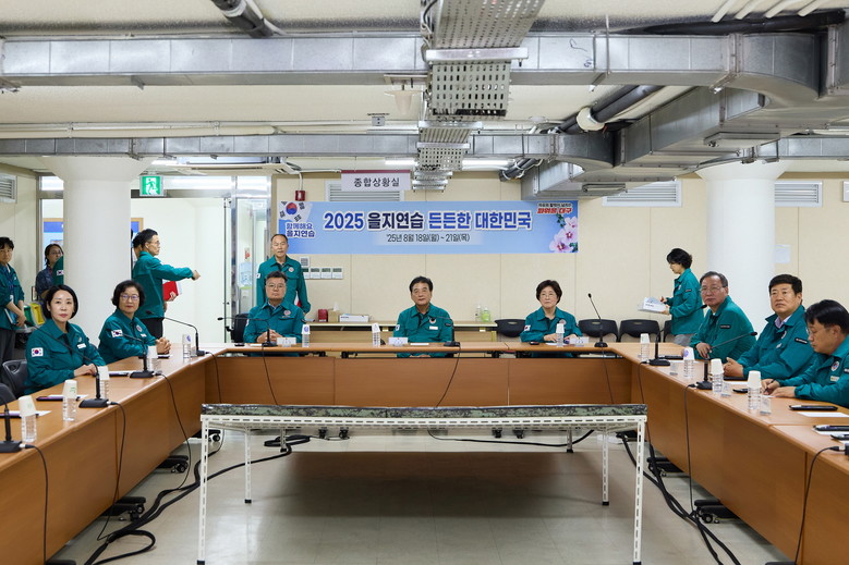 먼저 을지연습 주관 부서인 사회재난과장으로부터 을지연습 훈련상황을 보고 받고, 공무원과 군인, 경찰 등 관계자들의 비상대비태세 상황을 면밀하게 둘러봤다.