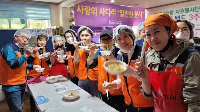 이날 봉사는 유희자 단장을 비롯한 회원 12명이 청태무침, 무우짱아치, 양파초절임을 직접 만든 후 배달을 하였다.