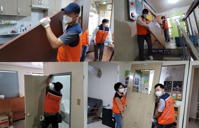 천정훈 집수리 봉사단장은 “오늘 노후된 출입문 교체봉사로 아이들이 쾌적한 환경에서 공부를 할 수 있게 되어서 행복하다.”고 말했다.