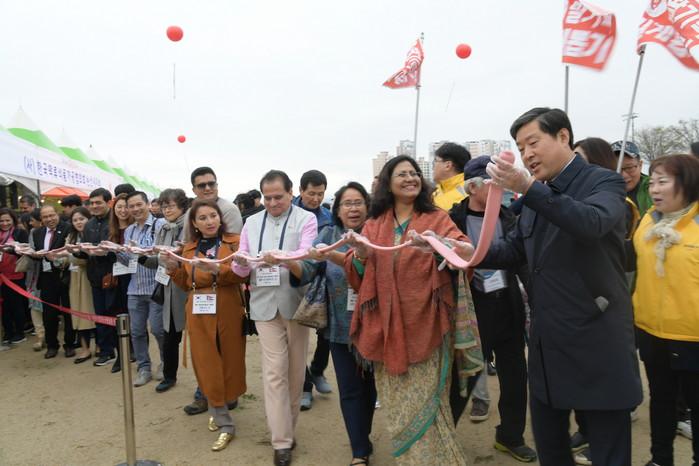 특히, 네팔, 투르크메니스탄, 루마니아, 방글라데시 등 주한 외교사절과 가족, 대사관 관계자 등 11개국 40여명이 방문해 세계적인 관심과 글로벌 축제다운 위상을 드러냈다.  ▼