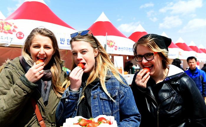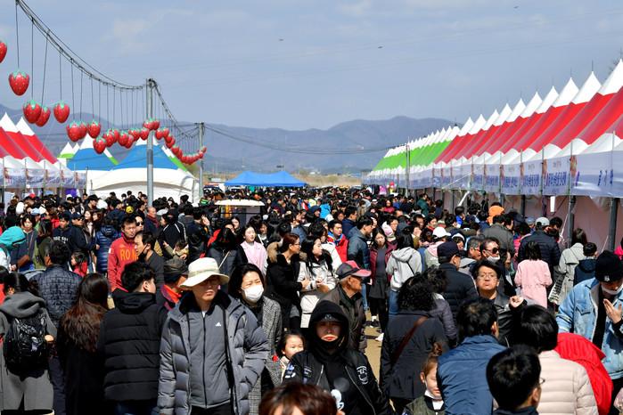 논산딸기축제, 비 속,·꽃샘추위 속에서도 글로벌 축제위상 실감