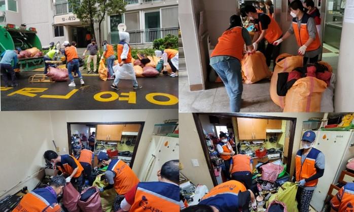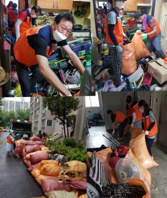 이날 봉사는 김호찬 단장을 비롯해서 자원봉사20명의 회원들이 집안쓰레기 약10톤을 수거 후 집안청소 봉사를 하였다.