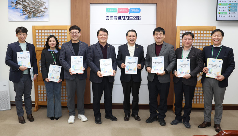 [강원도 세계타임즈=김민석 기자] 강원특별자치도의회 교육위원회 심오섭·최재민 의원은 10일, 강원특별자치도의회 의장 집무실에서 ‘강원형 IB’ 도입을 위한 선진 교육기관 벤치마킹 결과보고회를 도의회 의장, 교육위원회 위원장 및 교육위원회 관계자 등 10명이 참석한 가운데 실시했다.