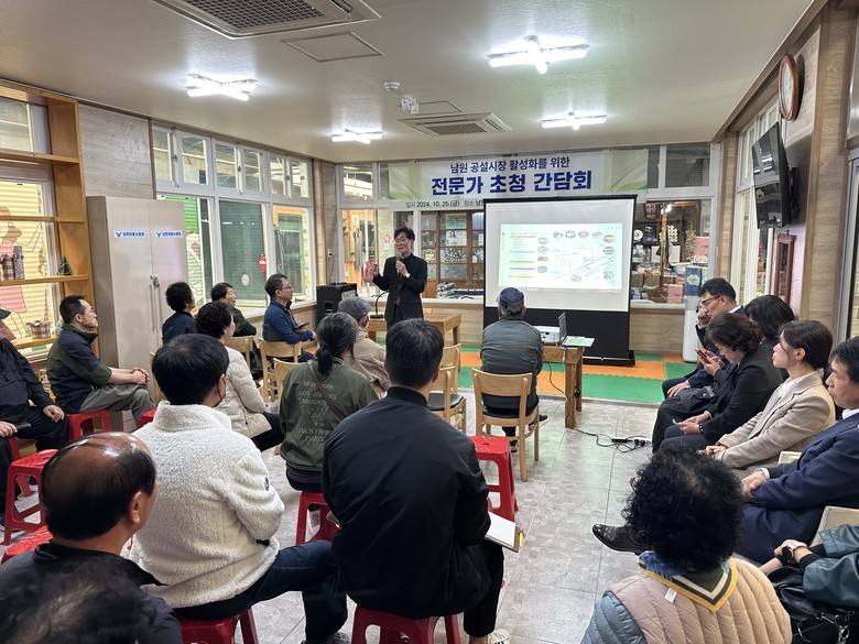 [남원시=세계타임즈 신승민 기자] 남원시의회 ‘전통시장 활성화 연구회’(대표의원 강인식)는 지난 25일 남원공설시장에서 ‘전통시장 활성화를 위한 전문가초청 간담회’를 진행했다.