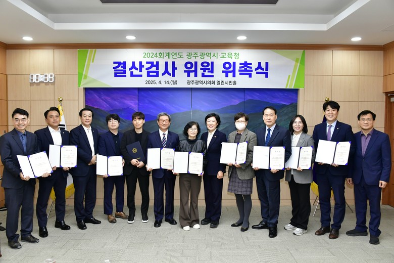 [광주 세계타임즈=손권일 기자] 광주광역시의회(의장 신수정)는 14일 시의회 열린시민홀에서 광주시와 광주시 교육청을 대상으로 하는 2024회계연도 결산검사위원 위촉식을 개최했다.