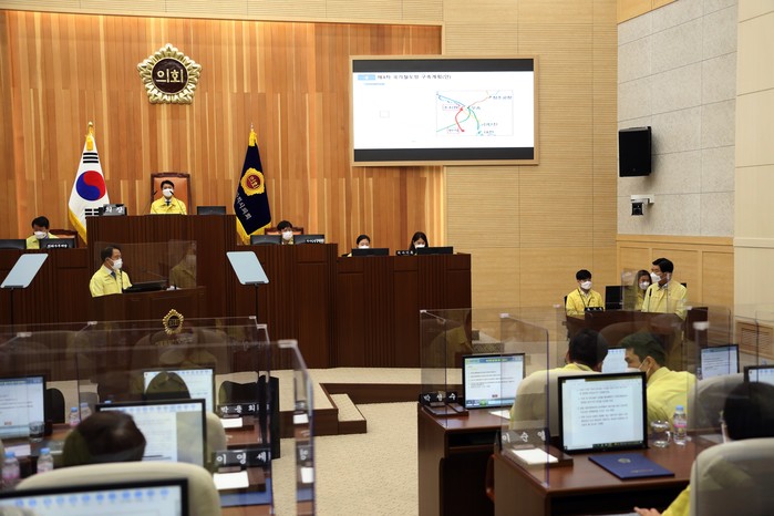 특히 광역철도 건설 지역으로 선정된 자치단체가 법령에 따라 의무적으로 건설 비용의 30%를 부담하게 돼 있다는 점을 언급하면서 집행부에 관련 정보 공개와 함께 재원 마련 대책을 주문해 눈길을 끌기도 했다.