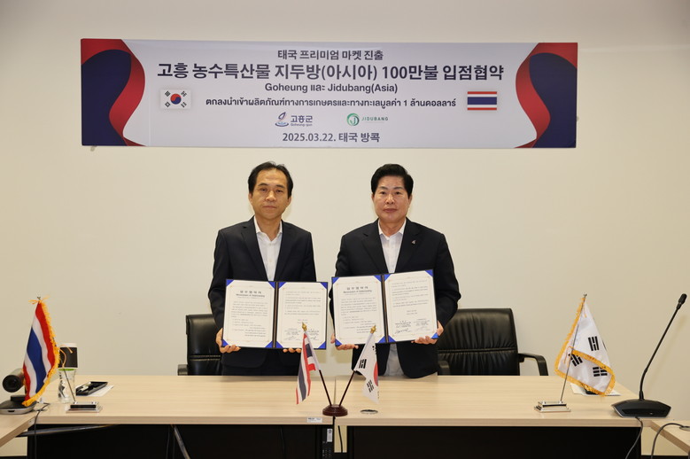 [고흥군 세계타임즈=송민수 기자] 고흥군(군수 공영민)은 22일, 태국 지두방아시아(대표 임준호)와 100만 달러 규모의 농수산물 입점 협약을 체결했다고 밝혔다.