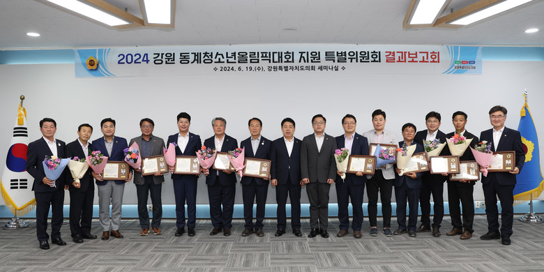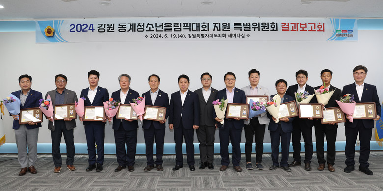 [강원도 세계타임즈=김민석 기자] 강원특별자치도의회 「2024 강원 동계청소년올림픽대회 지원 특별위원회(위원장 심오섭)」는 2024년 6월 19일 16시 30분에 도의회 세미나실에서 ‘2024 강원 동계청소년올림픽대회 지원 특별위원회 결과보고회’를 개최했다.
