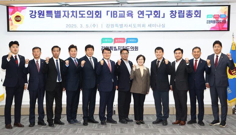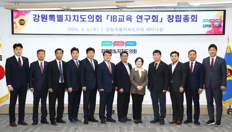 [강원도 세계타임즈=김민석 기자] 제11대 강원특별자치도의회 의원 연구 모임인 「IB교육 연구회」(회장 심오섭 의원)가 3월 5일 도의회 세미나실에서 16명의 회원과 강원자치도 교육청 관계자 등이 참석한 가운데 창립총회를 개최하고 본격적인 활동에 들어갔다.