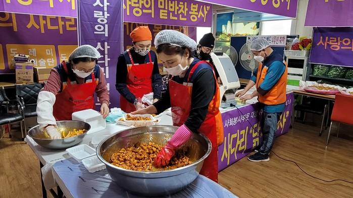 이날 봉사에는 유희자 단장을 비롯한 자원봉사자 5명은 오전10시~오후2시까지 4시간 동안 닭강정을 즉석에서 만든 후 대덕구 오정동 열매주간보호센터(20개), 서구 탄방동 대전발달장애인부모협회(15개), 유성구 용계동 성세시온의집(30개), 성세재활자립원(30개)에 전달을 하였다.