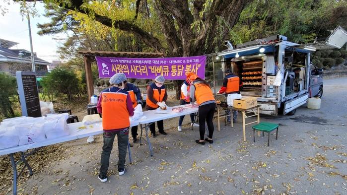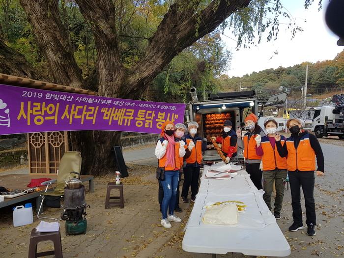 이날 봉사는 신상일 단장을 비롯한 회원 10명이 동구 쌍청공원에서 즉석에서 구운 바비큐 통닭 50마리를 동구보건소에 전달을 하였다.