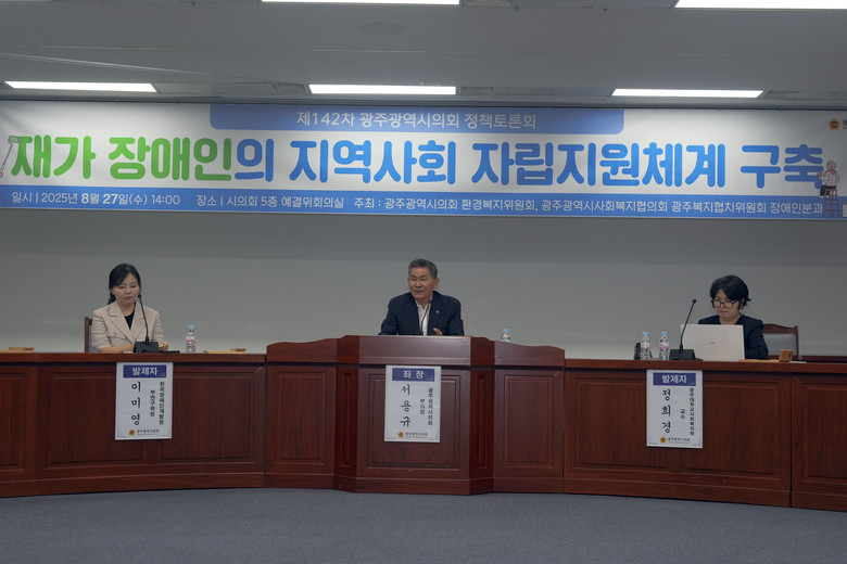 서용규 의원은 “광주는 이미 통합돌봄 및 최중증 발달장애인 24시간 돌봄체계와 같은 지원사업 등이 전국 최초의 혁신 사례를 만들어 왔다”며, “이번 토론회를 계기로 재가 장애인도 지역사회에서 당당한 시민으로 살아갈 수 있도록 법과 제도를 넘어선 실질적 지원체계를 구축해야 한다”고 밝혔다.