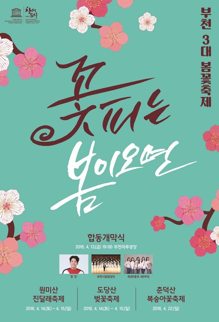 3대 봄꽃축제의 시작을 알리는 합동개막식이 4월 13일 오후 7시 부천마루광장에서 펼쳐진다. 봄꽃축제 영상 상영과 치어리더, 부천시립합창단 공연으로 무대를 열고 가수 창민, 목관 5중주 Ai의 축하공연도 마련돼 있다. 부대행사로 꽃차 시음, 공예체험 전시 및 판매, 봄꽃축제와 경기정원문화박람회 홍보부스가 운영될 예정이다.