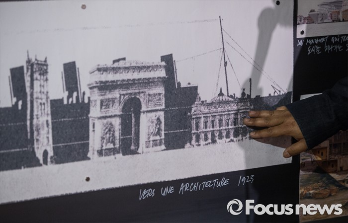 (서울=포커스뉴스) 5일 오전 서울 종로구 국립현대미술관 서울관에서 열린 '젊은 건축가 프로그램 2016' 기자간담회에 참석한 신형철 건축가가 작업에 영감을 준 한 이미지를 소개하고 있다.